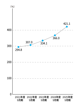 | 流動比率 | 294.8 | 307.0 | 334.1 | 366.0 | 421.1 |