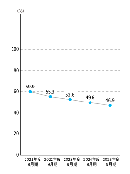 | 固定比率 | 59.9 | 55.3 | 52.6 | 49.6 | 46.9 |
