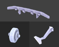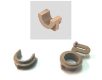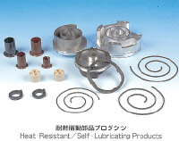 対鋳鉄用耐熱摺動材料を使用した部品。PPS樹脂をベースとした優れた耐熱性、酸、アルカリ、エアコン冷媒等優れた耐薬品性を備え、摺動助剤の添加により、従来のPPSよりも良好な摺動性を示します。